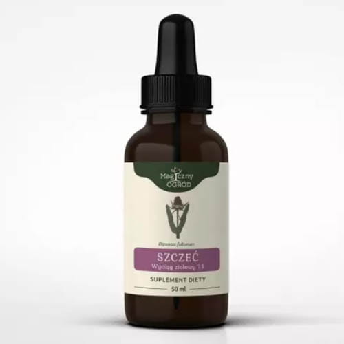 Magiczny Ogród Szczeć Polska nalewka 1:1 NANGA 50 ml- Suplement diety w postaci nalewki Nanga szczeć stosowana przy chorobach odkleszczowych. Roślina ma bardzo charakterystyczny wygląd, liście tworzą zieloną rozetę, z której wyrasta bardzo wysoki, kolczasty kwiatostan.