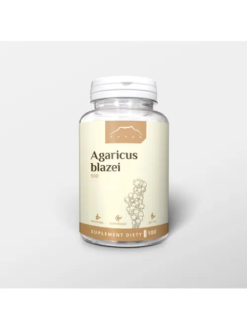 Nanga Agaricus blazei 100kps. - Agaricus blazei to brazylijski grzyb, ceniony za pozytywny wpływ na odporność, poziom cukru i cholesterolu we krwi oraz ciśnienie tętnicze. Redukuje stres.
