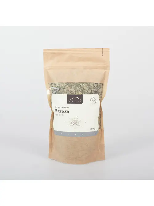 Brzoza brodawkowata (Betula pendula) – średniej wielkości drzewo liściaste o delikatnej budowie i miękkich gałązkach. Jego charakterystyczną cechą jest gładka, mlecznobiała kora poprzecinana ciemnymi brodawkami. Można spotkać je w całej Europie i na zachodnich obszarach Azji. W Polsce występuje powszechnie. Zarówno liście, jak i kora, a także pyłek i sok brzozowy stanowią cenny surowiec zielarski. Liście brzozy obfitują w takie substancje aktywne, jak: flawonoidy, kwasy fenolowe, garbniki, triterpeny, saponiny, betulina oraz kwas betulinowy. W dawnej medycynie ludowej świeże liście przykładano do ciała dla poprawy kondycji stawów i kości, a także sporządzano z nich napary wspomagające prawidłową pracę układu pokarmowego. Niektóre dawne zastosowania są wciąż aktualne, ale współcześnie liście brzozy to przede wszystkim środek wspierający oczyszczanie nerek i dróg moczowych i zwiększający ilość wydalanego moczu, a co za tym idzie, usprawniający detoksykację organizmu. Produkt skierowany jest szczególnie do osób pragnących wesprzeć swój układ moczowy oraz zadziałać kojąco na układ ruchu.