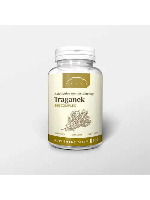 Mrozoodporna roślina z charakterystycznymi kwiatami i pędami porośniętymi pierzastymi liśćmi. Występuje w Chinach i Mongolii. Jako surowiec zielarski wykorzystuje się korzeń traganka. Najważniejsze substancje aktywne to saponiny triterpenowe. Stosowany w Tradycyjnej Medycynie Chińskiej. Wspiera system odpornościowy organizmu. Kapsułki bez dodatku barwników, konserwantów, wypełniaczy i substancji poślizgowych.